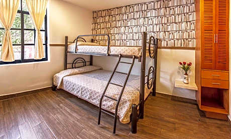 This room features Talavera tiles details, 32-inch flat-screen TV, work desk, private bathroom with a rain-shower and free toiletries, fan, wardrobe and electronic lock. It includes a bunk bed.