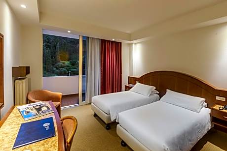 Hotel Millepini offers classic rooms with a balcony overlooking the lush garden or the hills. It also features a 30,000-m² garden and is 0.9 mi from the center of Montegrotto Terme. The air-conditioned rooms include a TV, mini-bar and a private bathroom with hairdryer. Most feature carpeted floors, while others have wooden pavements. Some also have a flat-screen TV. On request, the hotel offers a wellness center with indoor swimming pool, hot tub and fitness center. Guests can also try scuba diving in the 42-yard deep swimming pool with thermal water. The restaurant at Hotel Terme Millepini serves traditional cuisine from Veneto. Special menus for children and gluten-free meals are also available. A breakfast buffet is provided every morning. Providing free parking, the hotel is 5 minutes’ drive from the A13 Motorway. Staff can help organize trekking and cycling itineraries in the Colli Euganei area.