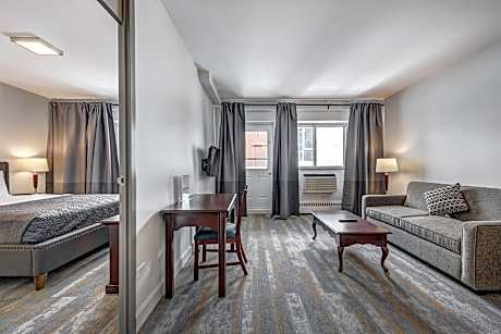 Located in the center of the Côte-des-Neiges historic neighborhood in Montreal, Terrasse Royale Hotel is 10 minutes' walk from Côte-des-Neiges Metro Station. It features suites with free WiFi. Each spacious suite at Hotel Terrasse Royale offers dark hardwood furniture, free WiFi and a flat-screen TV. A large work desk and an in-room safe are also provided. The on-site gym features full-length mirrors and cardio equipment. Concierge services are available at the 24-hour front desk. Montréal-Pierre Elliott Trudeau International Airport is 7.8 mi from Terrasse Royale. The hotel is also located near Saint-Joseph's Oratory, an array of restaurants, pubs, grocery stores, pharmacies and access to public transportation.