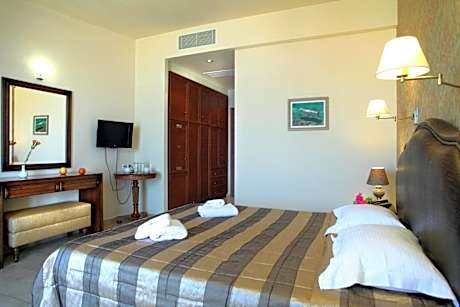 Boasting an outdoor pool, Tesoro Hotel is located in the seaside village of Nikiana. It offers stone-built accommodations opening to a balconυ, some with Ionian Sea views. Free Wi-Fi is available in public areas. Tastefully decorated, all air-conditioned rooms at Tesoro are equipped with LCD TV, mini-bar and safe. Stocked with free toiletries, the private bathroom comes with a bathtub and hairdryer. Guests can enjoy a meal at the on-site restaurant or have a refreshing drink from the bar. Room service is also provided. Tesoro Hotel features a tour desk and can assist with car and bicycle rentals. Recreational activities such as diving, hiking and skiing are offered in the surrounding area. The seaside village of Nydri is 2.5 mi away and Lefkada Town can be reached in 4.3 mi. Free private parking is available in the premises. Located 0.6 mi from the beach