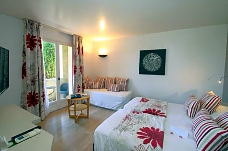 Located in the village of Maussane les Alpilles, Val Baussenc, The Originals Relais offers rooms set in an authentic Provençal house. The hotel features a seasonal, heated pool, a sauna, a hammam and a fitness center. Baux-de-Provence is 3.7 mi away. Free WiFi access is available. Set among olive trees, the air-conditioned rooms are equipped with a private bathroom, flat-screen TV and a mini-bar. The hotel’s restaurant serves fresh, local and seasonal produce are served in traditional dishes. You will find the Roman ruins of Glanum and Montmajour Abbey within a 20-minute drive. Just 14 mi away you can explore Camargue National Park, famous for its pink flamingos.
