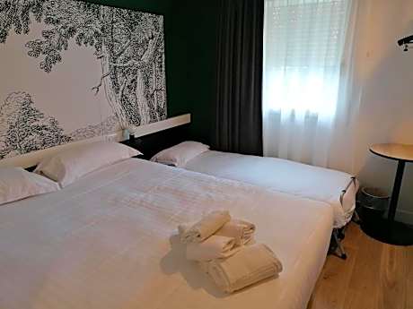 Between Bordeaux and the Bassin d'Arcachon, come put your suitcases in this 44-room hotel restaurant, completely renovated in 2023. In a green setting, while being close to the main roads (984 ft from the A63 motorway), come and discover this warm and modern establishment with an atypical decoration, between ocean and pine forest. A cozy restaurant offers homemade cuisine, based on fresh and local products, and an equally local bar menu. A 60m2 seminar room can also be rented for your meetings. It is naturally towards a concept of sustainable development that this establishment has moved, with a strong desire to preserve the conviviality and the spirit of sharing that emerges from it. Whether you come with family or for business in the South of Bordeaux, do not hesitate to cross the door of this establishment, the whole team will be happy to welcome you. Games, library and exhibitions can be discovered on site. Stopover evenings available on request. Rooms for 1 to 4 people can be reserved. The renovated and air-conditioned rooms are equipped with a private bathroom, a flat-screen smart TV and free Wi-Fi access. Tea and coffee making facilities are also provided. A buffet breakfast is served every morning and can be enjoyed on the hotel's terrace. Open from Monday to Thursday evening, the hotel's air-conditioned restaurant serves traditional regional cuisine which you can enjoy outdoors. Free secure parking is available on site and the center of Bordeaux is just a 20-minute drive away. Bordeaux-Mérignac Airport is 8.1 mi away.