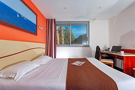 Hotel Ker Moor Saint-Quay Portrieux is located in Saint-Quay-Portrieux on the north coast of Brittany overlooking Saint Brieuc Bay. It offers rooms with attached bathroom and a terrace with panoramic sea views. Each room is equipped with a TV with cable channels, free WiFi access and facilities for making tea and coffee. Because of its position on top of a cliff, Hotel Ker Moor Saint-Quay Portrieux has spectacular views of the sea and Breton Coast islands. Guests are invited to enjoy these views while they have breakfast on the hotel’s terrace. The hotel has direct access to the GR34 hiking trails and access to the beach. Saint-Quay-Portrieux is a fishing port and marina located 50 mi from Dinan. For guests who arrive by car, free parking is available. Charging stations for electric cars are available at this property.