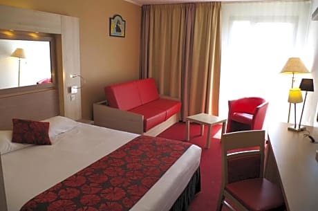 The Originals Boutique, Hôtel Aquilon, Saint-Nazaire is located just 5 minutes away from La Baule and offers free parking. It is 1.6 mi from Saint Marc's Beach and near to a shopping center. Non-smoking guest rooms are modern and equipped with air conditioning, private bathrooms, work desk and satellite TV. Hôtel Aquilon offers a range of onsite services including a quality restaurant, 24-hour room service, Wi-Fi access and an airport shuttle. A buffet breakfast is served each morning. Guests can relax in the lounge or in the garden by the large outdoor swimming pool.