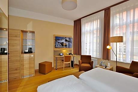 Located in the heart of the Old Town of Quedlinburg in Saxony-Anhalt, this historic, family-run hotel is a beautiful half-timbered building providing classically and tastefully furnished rooms. Hotel Theophano is an ideal base for exploring the historic Medieval attractions and unique architecture of Quedlinburg, which is an official UNESCO World Heritage Site. Guests are welcome to enjoy the hotel sauna, subject to a EUR 15 fee per person per 2 hours. From Hotel Theophano, guests can easily make day trips to the nearby Harz Mountains. Free parking is available at the hotel, subject to availability.