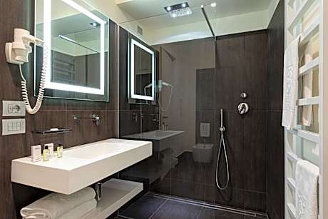 The Tiferno is a historic 4-star hotel in the center of Città di Castello. Set in a former monastery of the 17th century, the hotel offers free parking and free Wi-Fi. Rooms at Hotel Tiferno are bright and spacious. Some offer views of the Church of Saint Francis. Tiferno Hotel has a billiards and games room. The hotel's interiors are decorated by paintings of Alberto Burri, who was born here. A spa with Finnish sauna, Turkish bath and sensory showers is also available. The hotel's Le Logge restaurant offers creative variations of traditional Umbrian recipes. The main dining room has a fireplace. Meals are served outdoors in fine weather.