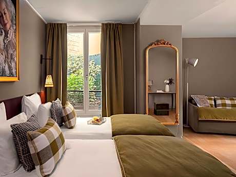The hotel is located in quiet and typically paved Parisian street 1148 feet from the Arc de Triomphe and a 5-minute walk from Avenue Champs Elysées. It offers rooms under the mansard on the sixth floor that overlook the rooftops of Paris. All of the rooms offer free high-speed WiFi internet access. At the Hôtel Zélie, breakfast is served in the winter garden which features a patio and a fountain. Gluten free breakfast is available upon request. Guests can enjoy coffee facilities at the bar from 11:00. Place de l'Etoile is just 656 feet away leading to Place de la Concorde and Musée du Louver. The Eiffel Tower is a 20-minute walk away.