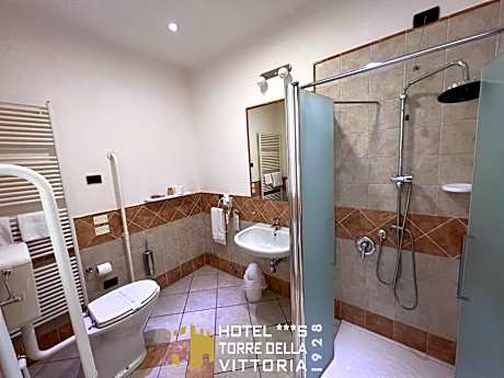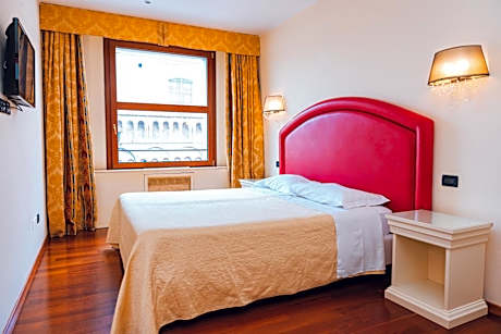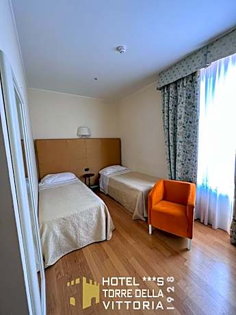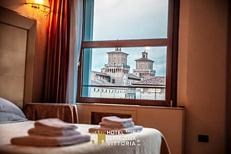 Offering free WiFi and a panoramic city-view terrace, Hotel Torre della Vittoria is located on the 3rd floor of a building in central Ferrara, within 656 feet of the Estense Castleand 164 feet of the Cathedral. The spacious and elegant rooms have a flat-screen TV. Rooms at the Torre della Vittoria Hotel are air conditioned, and feature a mini-bar and a fully fitted private bathroom. Most have views of Ferrara Cathedral and the Estense Castle. Ferrara Train Station is 0.9 mi away.