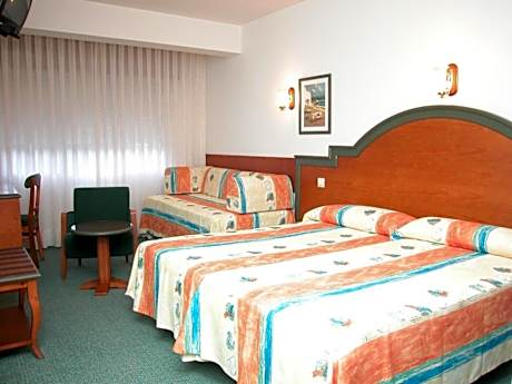The Hotel Touris on the O Grove peninsula has a swimming pool and tennis courts overlooking the sea. Its rooms accommodate up to 4 people, and many also have sea views. The Touris has gardens and a terrace, while inside there is a TV room and a free Wi-Fi hotspot. The hotel also has free onsite parking. The café in the Touris Hotel offers a buffet breakfast, and then snacks and drinks throughout the day. The dining room has sea views. O Grove can be found in the Rias Baixas area of Galicia. Playa de la Lanzada Beach is just 1.2 mi away, as is Isla de la Toja.