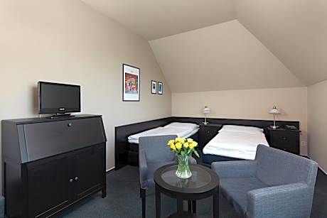 Featuring free toiletries, this triple room includes a private bathroom with a bath, a shower and a hairdryer. The triple room has carpeted floors, a seating area with a flat-screen TV, a mini-bar, a wardrobe as well as city views. The unit has 2 beds.