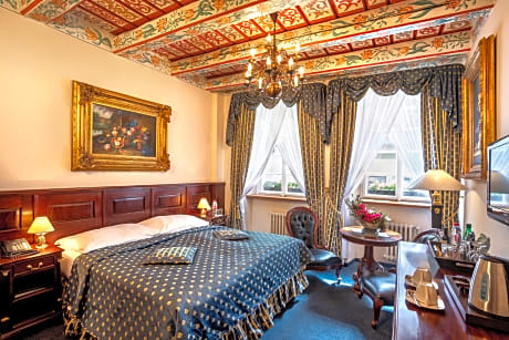 The U Zlatého Stromu hotel is located in the historical center of Prague in the Old Town, on the ancient King's Row, just few steps away from the Charles Bridge and within a walking distance of all major sights. The rooms are fitted with original furnishings and many feature a painted Renaissance ceiling. Each room also has a kettle and coffee. The on-site restaurant serves Czech and international cuisine. The roofed atrium with a large sea aquarium offers a pleasant seating. The Music Club is located in the basement. The reception staff and room service are available 24 hours a day. A covered parking is located approximately 984 feet from the U Zlatého Stromu hotel.