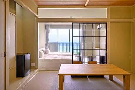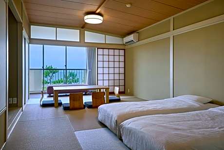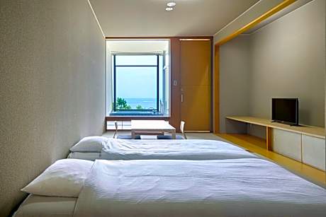 The quadruple room includes a private bathroom, well-fitted with a bath, a shower, a bidet, a hairdryer and slippers. The air-conditioned quadruple room features a flat-screen TV, tatami, a safe deposit box, an electric kettle as well as sea views. The unit has 4 futons.