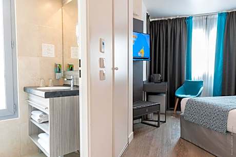 Located in Versailles, Hôtel Versailles Chantiers is a 19-minute walk from Château de Versailles and is opposite Versailles Chantiers Train Station, which leads directly to the center of Paris. Free WiFi is provided. Each room comes with a flat-screen TV and a private bathroom equipped with a walk-in shower. Some rooms are suitable for guests with reduced mobility. Hôtel Versailles Chantiers has a 24-hour front desk service and restaurants and grocers can be found within walking distance. The Montreuil Domain is 0.6 mi from the property. Versailles – Chantiers RER Train Station provides access to the Eiffel Tower and Noter Dame Cathedral. Le Golf National is 6.2 mi from the hotel.