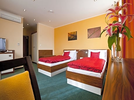 This hotel is one mile away from Petrzalka Train Station and 1.9 mi from Bratislava's city center. It offers air-conditioned accommodations with LCD satellite TV, safes and private bathrooms. The spacious, colorful rooms at Hotel Viktor have chip card access and the cards can be used for paying at the restaurant. Breakfast can be served every morning. The Viktor is 6.8 mi away from Bratislava's M.R. Stefanika Airport.