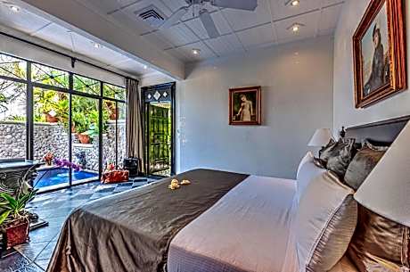 This luxurious oceanfront boutique Hotel has a private beach and stunning views of Nicoya Gulf and Jacó's crescent beaches. It offers gourmet dining, a serenity spa and magnificent infinity pool. The lavish rooms at Hotel Villa Caletas have Victorian design, with quality black wood furniture and grand 4-poster beds. All have mosaic floors and some have a terrace with hydro-massage tub. The concierge at Villa Caletas offers rainforest hiking tours, canopy-walks and beach horseback rides. Guests can use the gym, and unwind with a perfumed oil massage. The Anfiteatro Restaurant at Caletas Villas offers individual terraces with dramatic sunset views. Mirador Restaurant serves French and Central American fusion food, fine wines, and sinful deserts. Guests can enjoy the ocean view from the infinity pool, with a miniature waterfall and tropical island. They can also order exotic cocktails and dishes on Caletas Beach, one mile from the hotel.