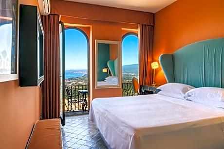 Villa Ducale is a small, luxurious boutique hotel with outstanding views of the sea, Mount Etna and the Strait of Messina. It features free WiFi in public areas, an outdoor hot tub, and a sun terrace with loungers. The strategic location of Hotel Villa Ducale combines the tranquility of a panoramic spot and the proximity to the town center, a 25-minute walk away. The hotel offers a free shuttle service to the center of Taormina, and an airport shuttle is available on request. Villa Ducale is renowned for its rich breakfast buffet with homemade Sicilian specialties, served on the panoramic terrace. Restaurant service is available throughout the day, and the hotel features a popular cocktail buffet every evening.