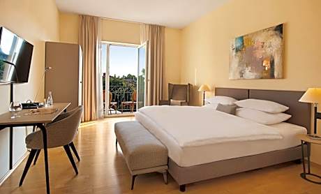 This nonsmoking hotel is quietly located in Bad Schönborn, beside the Kurpark gardens. It offers brightly decorated rooms with works of art, a large wellness area and fine Mediterranean cuisine. Wellness facilities at the 4-star Hotel Villa Medici include 2 saunas, an infrared cabin, and a modern fitness room. All rooms and suites at the Villa Medici feature parquet flooring, elegant furniture, and a desk. Nearly all rooms have a balcony. Big breakfast buffets are available in the morning. Guests can enjoy a wide range of dishes at the Medici Hotel’s Dolce Vita restaurant with sun terrace. The Villa Medici Hotel’s reception is open from 06 AM until 9:30 PM. Free parking spaces are available outside the hotel, and the A5 motorway is only 3.1 mi away.