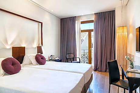 These Vincci room includes air-conditioned, satellite TV, free wired internet, a safe and a bathroom with amenities and a hairdryer. All rooms have a double bed and an interior views.