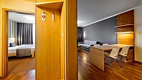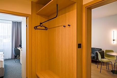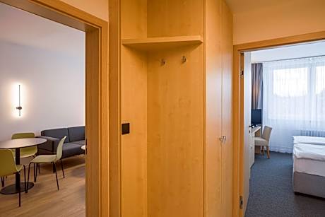 The nonsmoking Hotel Vista in Brno-Medlánky is a 10-minute ride by a direct tram from the city center. It offers modern rooms and free internet (depends on availability). All rooms have a flat-screen satellite TV and a stylish bathroom with a heated towel rack. The Vista Hotel is easily reachable from the motorway, and the Brno fairgrounds BVV can also be reached within 15 minutes from the hotel. An airport shuttle service is available on request. The hotel has a Finnish sauna and also the possibility to order wellness services from external masseuses on the premises of the hotel.