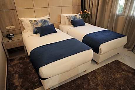 Featuring a terrace, bar and views of city, Hôtel Volubilis Meknès is located in Meknès, 17 miles from Volubilis. With a shared lounge, the 3-star hotel has air-conditioned rooms with free WiFi, each with a private bathroom. The property has room service, a concierge service and currency exchange for guests. The rooms at the hotel come with a seating area, a flat-screen TV and a safety deposit box. Guest rooms will provide guests with a fridge. At Hôtel Volubilis Meknès you'll find a restaurant serving Moroccan, Pizza and Seafood cuisine. Vegetarian, halal and kosher options can also be requested. The accommodation has a grill. Speaking Arabic, English, Spanish and French, staff are willing to help at the 24-hour front desk. Fès–Saïs Airport is 43 miles from the property, and the property offers a paid airport shuttle service.