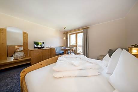 East or West-facing room with balcony overlooking the mountains, town and countryside.