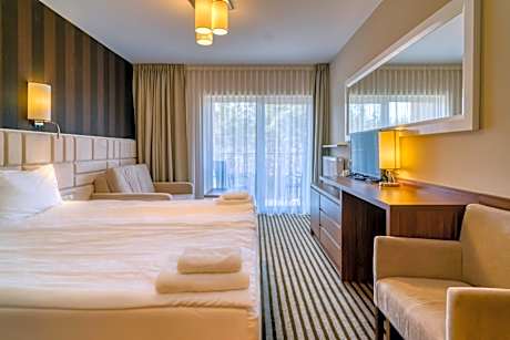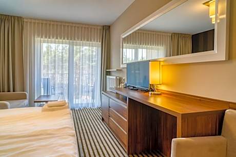 Featuring free WiFi, White offers accommodations in Mierzeja Wiślana Landscape Park in Krynica Morska, 328 feet from the beach on the Baltic Sea. Private parking is available on site. Rooms are equipped with a flat-screen TV. You will find a kettle and a mini-bar in the room. The rooms are fitted with a private bathroom with a shower, with a hair dryer provided. A TV is featured. Most come with a balcony overlooking the forest and the sea. There is a 24-hour front desk at the property. Guests can get beach windscreens and deckchairs at the reception. Vistula Lagoon is 2625 feet from the reception.