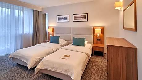 The 3-star Hotel Wolin is located in Międzyzdroje, just 2625 feet from the wide, sandy beach. It offers spa facilities, spacious rooms with free Wi-Fi and an indoor swimming pool. All rooms at the Wolin come with a balcony and a flat-screen TV with cable channels. Each has a modern bathroom with a shower and a hairdryer.Sun loungers and a beach screen are provided. Hotel Wolin houses a recreational center with saunas, a hot tub, and salt cave. Guests can enjoy billiards or playing tennis. Front desk staff is available 24 hours a day. The hotel’s restaurant served Polish and European dishes. Guests are also welcome to visit the café and relax in the grill garden. Hotel Wolin is located in a quiet part of Międzydroje, 1 mi from the city’s railway station.