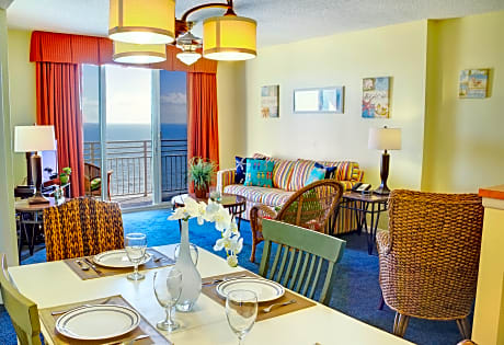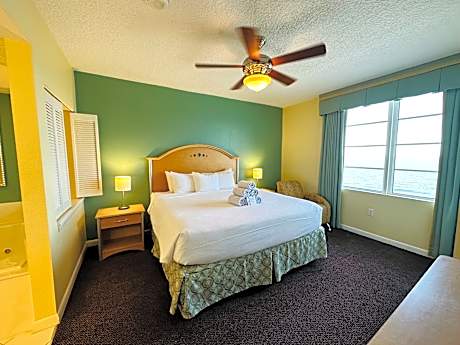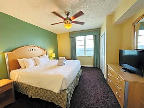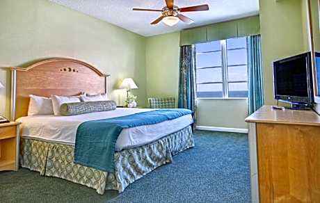 Ocean Walk Resort Resort is an oceanfront masterpiece of Art Deco design and style and is located on the area's only traffic-free, family-friendly beach. The Daytona Beach Boardwalk is 656 feet away. Each room contains a flat-screen TV. Additional amenities include a microwave, refrigerator, and a coffee/tea maker. Ocean Walk Resort provides guests with an indoor and outdoor pool. A lazy river and water slide are available for the guest's enjoyment. A fitness center and volleyball court are also included at the property. The Ocean Center is located 1148 feet from the Ocean Walk Resort. The property is 5 mi away from Daytona International Speedway, and 5.6 mi from Daytona Beach International Airport. Daytona Beach will be hosting the Coke Zero 400 Race on the Weekend of August 23, 2024.Expect high traffic near the resort during this time.