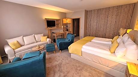 Our spacious double rooms are equipped with a double bed, a comfortable seating area and a desk. Amenities include a flat screen TV, telephone, Wi-Fi and a mini-bar. The bathroom is equipped with a shower, a washbasin and a toilet, and there is a shower room.