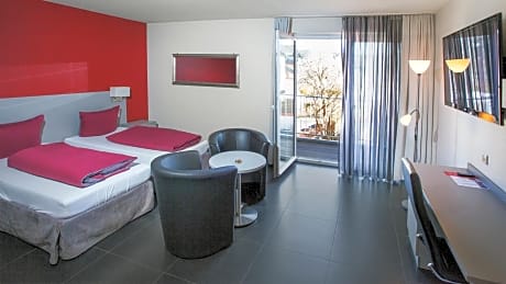 This double room features a balcony, flat-screen TV and soundproofing.