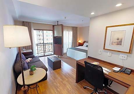 The Estanplaza Paulista welcomes you in the elegant Jardins district, offering an excellent location only 2 blocks from Paulista Avenue and from the Trianon-Masp Metro Station. Restaurants, museums, theaters, stores and the Ibirapuera Park can be reached on foot. The Expo Center Norte and Anhembi Convention Center are also located in the nearby. In addition to its neat, air-conditioned rooms, the Estanplaza Paulista offers a swimming pool, sauna and gym, as well as a restaurant and a bar. Another highlight of this 4-star hotel is its friendly staff, which are always willing to help guests with a smile on their face.