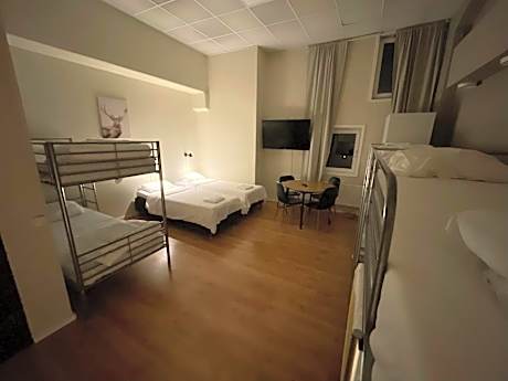 The quadruple room features a washing machine, soundproof walls, as well as a private bathroom boasting a shower and a hairdryer. Guests can make meals in the kitchen that has a stovetop, a refrigerator, kitchenware and a microwave. The quadruple room provides a tea and coffee maker, a dining area, a wardrobe, heating and a flat-screen TV. The unit has 4 beds.