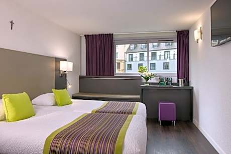 Located just 164 feet from the Sanctuary of Lourdes, Hotel Astrid offers a terrace, 24-hour reception, restaurant and bar. Saint-Pie X Basilica is just a 5-minute walk from the hotel. All rooms are air-conditioned and feature a TV with satellite channels and a safety deposit box. The private bathroom includes a hairdryer and free toiletries. A buffet breakfast is offered each morning at the Hotel Astrid and it can also be served in the guest room. There is a restaurant on site and guests can enjoy a drink in the bar. Additional features include a TV lounge, library, free Wi-Fi access and private & public parking on site at an extra cost upon availability. The train station is only 1.2 mi away and Tarbes-Lourdes Airport is a 20-minute drive from the hotel.