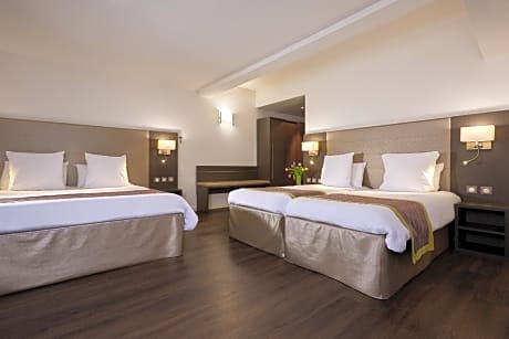 2 inter-connecting rooms (118 ft² in total) offers beds for 4 people with duvet, air conditioning, 2 bathrooms with a shower or a bathtub, toilet and hairdryer, coffee & tea, machine Satellite flat-screen LED TV 43 inch, a safe deposit box, free WiFi are also available.