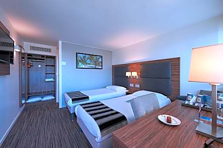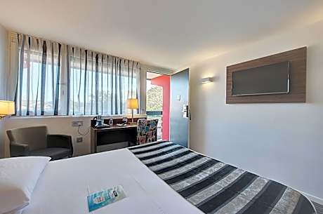 Located a 5-minute drive from Bordeaux Mérignac International Airport, Kyriad Bordeaux Ouest - Merignac Aéroport offers free Wi-Fi and free parking. The city center of Bordeaux is 15 minutes away by car. Guest rooms at the Kyriad Bordeaux Ouest - Merignac Aéroport are simply decorated and feature satellite TV. Each room has an private bathroom with a shower and the rooms are air conditioned. The hotel serves a buffet breakfast every morning. There's also a terrace where you can enjoy breakfast in fine weather. Our hotel offers a snacking service available 7 days a week. Bordeaux Lake Business Center is a 20-minute drive from the hotel. Bordeaux-Lac Golf Course is 5.3 mi away.