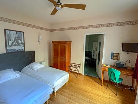 This room features a flat-screen TV, a desk and a reversible celling fan. It is complete with an en suite bath or shower-room.