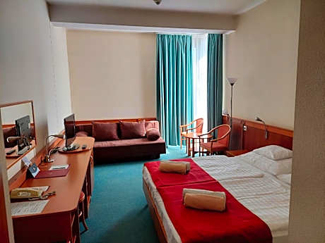 Hunguest Hotel Aqua-Sol is a 3-star wellness resort, located in the neighborhood of Hungary’s largest, dynamically developing medicinal spa, in the center of Hajdúszoboszló. It offers a pool, sauna, a hot tub and the entrance to the Aqua Palace experience bath with exclusive adventure pools. It offers well-equipped rooms and suites and some units are accessible for disabled guests. Guests of Hunguest Hotel Aqua Sol also enjoy free admittance at the Open Air Bath with 13 pools, open in summer and to the Medical Bath, open all year, featuring 4 outdoor pools and 3 indoor pools with thermal water.