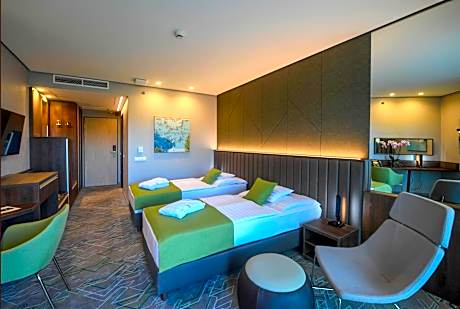 Hunguest Hotel Sóstó in Nyíregyháza features 4-star accommodations with a garden, a restaurant and a bar. Among the facilities at this property are a tour desk and luggage storage space, along with free WiFi throughout the property. A spa and wellness center comprising an indoor pool, an outdoor swimming pool, a fitness center, as well as a terrace can be used by all guests. At the hotel each room includes air conditioning, a desk, a balcony with a garden view, a private bathroom, a flat-screen TV, bed linen and towels. Guest rooms include a safety deposit box. A buffet breakfast is available daily at Hunguest Hotel Sóstó. The accommodation offers a hot spring bath. A variety of activities can be enjoyed on site or nearby, including hiking and water park. Staff speak German, English and Hungarian at the reception. Debrecen International Airport is 37 miles away.