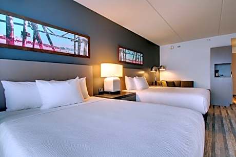 Guests can start their day with a complimentary breakfast featuring an omelet bar and enjoy spacious rooms equipped with a 42-inch flat-screen TV, sofa, and dedicated work area. The rooms also include cutting-edge media-to-TV adapters, enhancing your in-room entertainment experience.