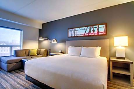 The outdoor grilling patio provides a perfect setting for a casual cookout, and guests seeking relaxation can unwind with a cocktail, premium beer, or glass of wine at the on-site H Bar. For dining, the hotel offers small plates and home-cooked style cuisine such as gourmet grilled cheese sandwiches.