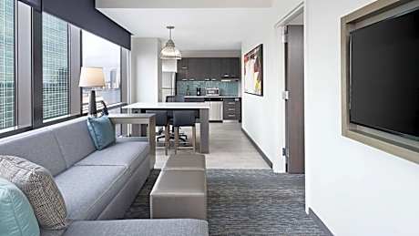 Located in Jersey City's Exchange Place district, Hyatt House Jersey City is 591 feet from the PATH train station and 1312 feet from the NY Waterway ferry, providing easy access to New York City. Guests can enjoy the on-site bar. This residential-style suites feature full kitchens and a seating area. All rooms come with a flat-screen TV. Each room includes a private bathroom. There is a 24-hour front desk at the property as well as a 24-hour Guest Market. Complimentary WiFi is available. Evening cocktails and small plates are available at the rooftop lounge, H Bar. Ellis Island is 3 mi from Hyatt House Jersey City, while Statue of Liberty is 2.6 mi from the property. The nearest airport is Newark Liberty International Airport is 12 mi away.