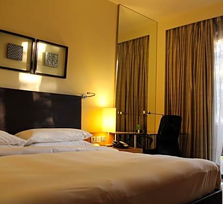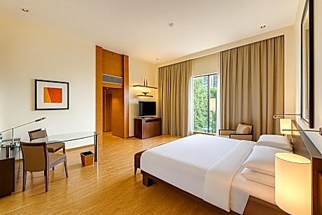 Crafted for coziness, every guestroom provides an array of features, guaranteeing a tranquil night's sleep while maintaining the level of comfort. For a more enjoyable stay, select rooms at hotel are equipped with blackout curtains and air conditioning.At Hyatt Hyderabad Gachibowli, guests can choose from a variety of room configurations, some of which feature separate living room and balcony or terrace. For certain chosen rooms, guests can enjoy in-room amusement like daily newspaper, television, in-room video streaming and cable TV as a part of their stay. Rest assured that your hydration needs will be met, as some guestrooms are equipped with a refrigerator, a coffee or tea maker, bottled water, instant coffee, instant tea and mini bar.It is worth noting that certain guest bathrooms feature a hair dryer, toiletries, bathrobes and towels for your convenience. During your visit, indulge in a range of delightful culinary choices at hotel to enhance your experience.Hyatt Hyderabad Gachibowli provides a superb assortment of leisure amenities for guests to enjoy.Eliminate those holiday calories by stopping by hotel and making use of their well-equipped exercise amenities.