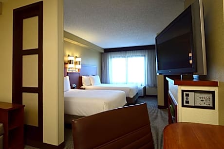 Hyatt Place Dallas Las Colinas is 7.5 mi from Dallas Fort Worth Airport. On-site dining options and complimentary shuttle service (within an 5 mi radius) are provided. A complimentary hot breakfast buffet is provided. Complimentary self-parking is available. An outdoor pool is offered as well. A 42-inch flat-screen TV and a sofa bed are featured in the seating area of each guest room at Hyatt Place Dallas Las Colinas. A refrigerator and single-serve coffee machine are available for in-room refreshments. Wireless internet is accessible, free of charge. A business center with computers and printers is available at Dallas Hyatt Place. Cardio exercise equipment and fresh towels are provided in the on-site 24-hour fitness center. A complimentary breakfast buffet including waffles, pancakes, oatmeal, and sandwiches is served each morning. The Guest Kitchen offers made-to-order and pre-made options for breakfast, lunch, and dinner. Guests can enjoy coffee, beer, and wine at the Bakery Café. 24-hour made-to-order casual dining is offered. A full bar is available onsite as well. Dallas Cowboys Stadium in Arlington is 18 miles from the hotel. Entertainment and dining in the Dallas city center is within 20 minutes’ drive.