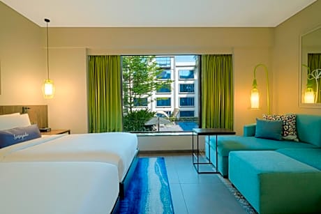 Hyatt Centric Candolim Goa provides flawless service and all the necessary facilities for visitors. Stay connected with your associates, as complimentary Wi-Fi is available during your entire visit. To facilitate your arrival and departure, you can pre-book airport transfer services prior to checking in. The hotel offers taxi and car hire amenities for your ease in navigating around Goa.When arriving by car, you'll be grateful for the on-site complimentary parking at hotel.The hotel offers reception amenities including concierge service, luggage storage and safety deposit boxes to ensure a comfortable stay for guests. Whether it's an extended stay or simply needing fresh attire, dry cleaning service and laundry service provided by hotel ensures your cherished travel garments stay spotless and accessible.Your stay will be comfortable with the presence of 24-hour room service, room service and daily housekeeping as an in-room amenity for your relaxation and enjoyment.Smoking is permitted solely in the specified smoking zones allocated by hotel.In order to ensure the utmost level of relaxation, the guestrooms feature an inviting design and are equipped with all basic necessities, creating a delightful stay experience.In select rooms, visitors can enjoy a touch of amusement with the availability of daily newspaper and cable TV for their entertainment needs. Rest assured, quenching your thirst is not a concern with instant tea available in select accommodations. Understanding the significance of bathroom facilities in enhancing visitor contentment, hotel offers a hair dryer and toiletries within a few chosen chambers. Each day, arise to a delightful complimentary morning meal at Hyatt Centric Candolim Goa. How about kicking off each day of your getaway with a delicious cup of coffee? At the hotel, relish in the invigorating taste of a freshly brewed, excellent coffee. Various excellent meal offerings at hotel ensure that enticing and easily accessible options are constantly available.Upon your arrival, don't miss experiencing bar for enjoyable in-house evening entertainment.Throughout the day, engage in the entertaining activities available at Hyatt Centric Candolim Goa.Enjoy a refreshing beverage al fresco at hotel's poolside bar savoring your preferred concoction.Guests who enjoy maintaining their fitness regimen while on holiday can visit the fitness center provided by hotel.
