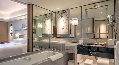 Great care is taken to ensure guests experience comfort through top-notch services and amenities. The hotel offers car hire amenities to assist you in discovering your desired offerings in Hangzhou.The hotel offers reception assistance, including concierge service, to ensure guest satisfaction. Should you require it, the tours can even assist you in booking tickets and securing reservations for the finest shows and events in the vicinity. Whether it's an extended stay or simply needing fresh attire, dry cleaning service and laundry service provided by hotel ensures your cherished travel garments stay spotless and accessible.The hotel's daily housekeeping ensures an excellent option for your stay. In order to ensure the utmost level of relaxation, the guestrooms feature an inviting design and are equipped with all basic necessities, creating a delightful stay experience. Selected rooms offer in-room amusement like cable TV as a source of entertainment for guests to enjoy. Within specific rooms, instant tea and mini bar is conveniently available for your use. Understanding the significance of bathroom facilities in enhancing visitor contentment, hotel offers a hair dryer and toiletries within a few chosen chambers. Various excellent meal offerings at hotel ensure that enticing and easily accessible options are constantly available.Throughout the day, engage in the entertaining activities available at Grand Hyatt Hangzhou. Unwind effortlessly each day by exploring the salon, conveniently situated within the hotel.