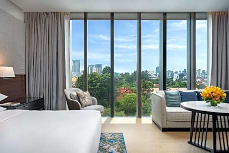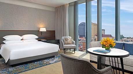 Experience an abundance of unparalleled facilities and features at Hyatt Regency Phnom Penh.Maintain seamless communication using the complimentary Wi-Fi at hotel. Effortlessly arrange transportation to and from the airport using the hotel's airport transfer services. Discovering Phnom Penh becomes even more accessible through the taxi and car hire amenities provided at the hotel. For visitors traveling by automobile, complimentary parking is available. During your stay at this fantastic hotel, the attentive front desk personnel can provide you with a range of amenities such as concierge service, luggage storage and safety deposit boxes. In search of city's top entertainment, seek assistance at the hotel's ticket service and tours for reservations.For extended visits or whenever required, the laundry service ensures your preferred travel garments remain fresh and accessible. Craving relaxation? Make the most of your stay at the Hyatt Regency Phnom Penh with convenient amenities like 24-hour room service, room service and daily housekeeping at your disposal.For visitors wishing to smoke, designated smoking zones can be found.At Hyatt Regency Phnom Penh, every guestroom is provided with convenient amenities and fittings to ensure a comfortable stay.Elevate your experience at hotel with the knowledge that certain rooms are equipped with air conditioning, ensuring a more pleasant stay for you.A few accommodations within Hyatt Regency Phnom Penh offer unique design elements such as a separate living room. Certain rooms boast in-room amusement features such as television and cable TV, offering guests an enjoyable stay. In select rooms within the hotel, a refrigerator, a coffee or tea maker, bottled water, instant coffee and instant tea is available to cater to your requirements when desired. In the hotel, certain guest bathrooms come equipped with essential bathroom amenities, such as a hair dryer, toiletries, bathrobes and towels, ensuring a comfortable stay for guests. Begin your day with a scrumptious on-site breakfast available each morning at Hyatt Regency Phnom Penh. Begin your day feeling refreshed and invigorated as you enjoy a delightful cup of quality coffee available at the cafe situated within the hotel. At the hotel, an assortment of easily accessible and delicious meal choices are available to satisfy your appetite whenever it strikes.Create unforgettable moments with your fellow voyagers just steps away, at hotel's bar and nightclub, for a delightful evening together. At Hyatt Regency Phnom Penh, guests can access vending machines that provide light snacks and beverages 24 hours a day.During your stay at hotel, an array of engaging activities and amenities guarantees a delightful experience.Conclude your holiday perfectly with a visit to massage, steam room, spa and sauna on your final days.Be sure to drop by the pool at hotel at least once during your stay. At Hyatt Regency Phnom Penh, utmost care is taken to ensure guests' comfort. Relish your preferred beverage in your swimwear by the hotel's poolside bar.Discover the fitness amenities at hotel to maintain your health and strength during your getaway.