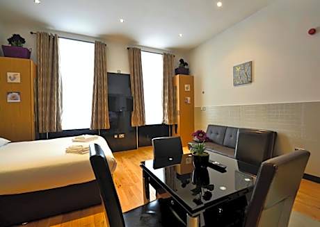 Smart Property implementing the newest technology where guests do online check-in from the comfort of their homes. Our building door is accessible on 1st entry via a keypad (code is given via an email on arrival date) and later via a physical key retrieved by guests from a locked box inside the building that will allow access to the flat / room as well as the building door. Before making a booking, it is essential that guests, on arrival date, have access to the email address that will be used to make the booking. With stylish décor, wooden flooring throughout, heating via radiators / cooling by fans, a fridge, tea/coffee making facilities, free toiletries and free Wi-Fi access. These flats are a 5-minute walk to Hyde Park and Lancaster gate Underground station. Paddington Main train station and all 3: Paddington, Bayswater & Queensway Underground station are all within 20 minutes walk away radius giving you extensive links to many prime London locations and attractions. Laundry facilities are available. Each kitchen features a cooker, a fridge, a microwave and kitchenware for guests to use. All units also have an private bathroom with a walk-in shower and free toiletries. Hairdryers and ironing equipment are both provided.