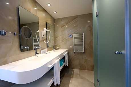 Set on the beachfront, Iberostar Selection Playa de Palma is located near nightlife and just 5 minutes' drive from Palma Airport. It features a swimming pool and sun loungers. Free premium high-speed WiFi is available. Iberostar Selection Playa de Palma offers fully equipped rooms, each one with a satellite TV, mini-bar and private balcony. The hotel offers 2 restaurants, one buffet-style and one á la carte. There is also an on-site bar, Bar Mar Blau, and a poolside bar. Guests will also be able to enjoy the Sensations Spa. There is also a fitness area and 8 golf courses near by. On the rooftop terrace, guest over 16 years of age staying in the Star Prestige rooms have access to an exclusive solarium with an infinity pool and sun loungers. The hotel is set 15 minutes' drive from the center of Palma.