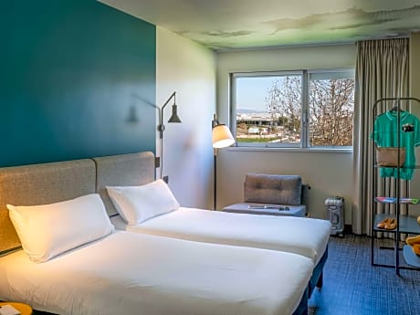The Ibis Barcelona Aeropuerto Viladecans is located just 3.1 mi from Barcelona El Prat Airport. This hotel features a 24-hour snack bar, and rooms with a flat-screen TV. Each air-conditioned room has wooden floors and attractive décor. All rooms have free fiber optic internet connection, a private bathroom and a desk. The L99 airport bus stop is a 15-minute walk away. There are also bus stops in front of Ibis Viladecans, from where you can reach both Plaça Espanya and Fira Gran Via in 35 minutes by public transport. The nearest beaches are less than 4.3 mi away. The hotel is 1.2 mi from Viladecans Railway Station, which provides regular trains to central Barcelona, 25 minutes away. Located between Sitges and Barcelona, the hotel has easy access to the C32 Motorway.