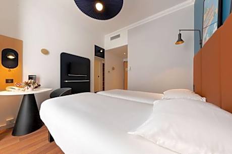Located 820 feet from Nice-Ville Train Station, and a 3-minute walk from Gare Thiers Tram Stop on Jean-Médecin Avenue, ibis Nice Center Noter Dame offers a 24-hour front desk, free WiFi and air-conditioned rooms. All soundproofed rooms feature a flat-screen TV with cable channels. The private bathroom is complete with a hairdryer, free toiletries and a shower. A buffet breakfast composed of sweet and savory dishes such as eggs, fruit salad, yogurts and juices is served every day. Pastries baked on site and fresh French Madeleine cakes are also on offer, as well as a hot beverage and a piece of fruit to take away. Outside of regular breakfast hours guests can also enjoy a lighter option, available from 04:00. The property has a bar where snacks are served 24 hours a day. Restaurants can be found within 2133 feet of the ibis Nice Center Noter Dame. This hotel is 5.6 mi from the A8 motorway and 3.7 mi from Nice Côte d'Azur Airport. Cannes is 21 mi away. A paid public parking can be found 656 feet away.